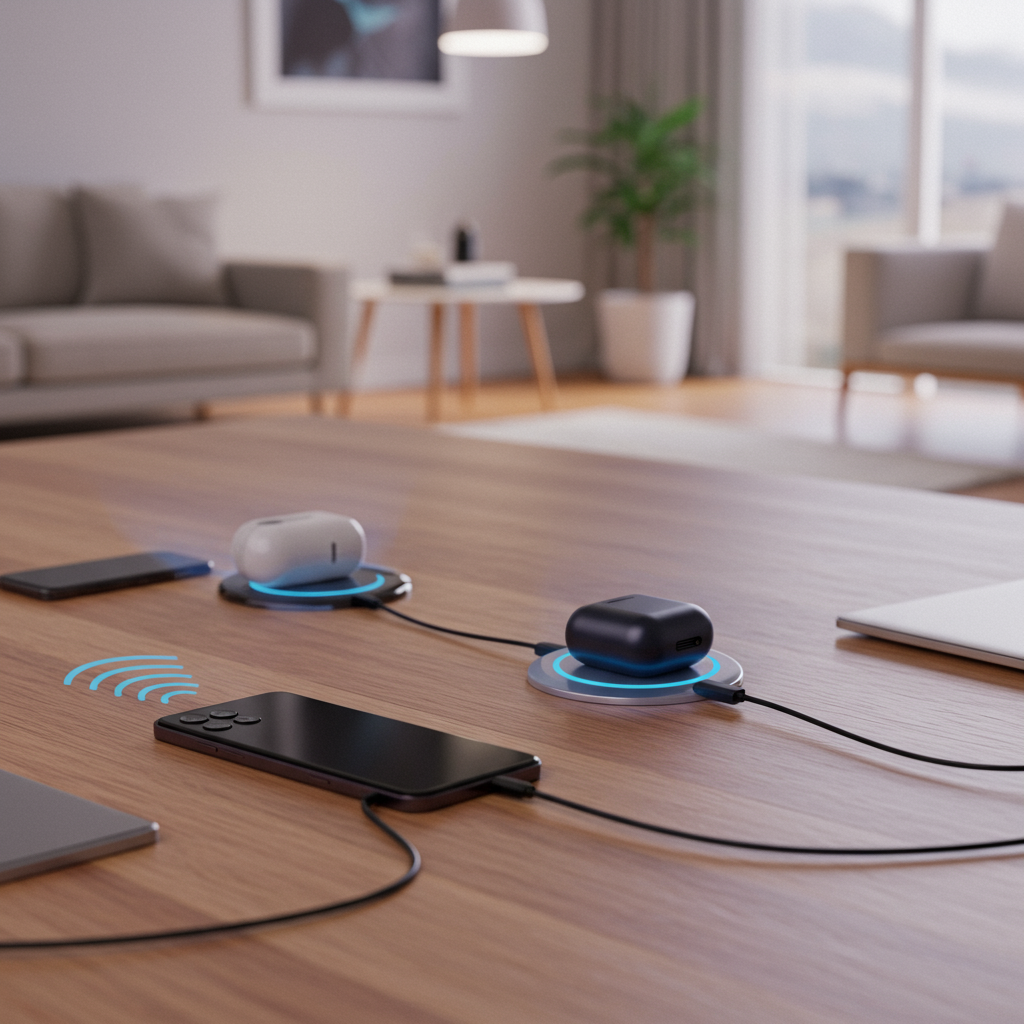 - 충전 케이블 없는 진정한 편리함: 사용자 경험의 극대화: 책상 위, 침대 옆, 거실 테이블 등 어디든 충전 패드만 있다면 케이블을 찾아 헤맬 필요 없이 스마트폰을 올려두기만 하면 됩니다. 진정한 '케이블 없는' 라이프스타일이 현실이 되는 거죠. 카페나 사무실에서도 충전 패드만 있다면 훨씬 편리해질 거예요.